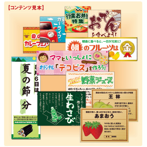 | コンテンツ機能 | 商品イラスト画像搭載/標準テンプレート搭載/デザイン画像搭載 キャッチコピー搭載/情報POP搭載 |