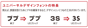 売場で伝えたいメッセージが映える書体を搭載。読みやすく、誤読されにくい「ユニバーサルデザインフォント」も搭載しました。※