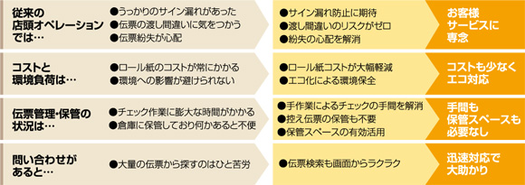 紙伝票がないので、サインや枚数確認など、煩雑な管理がなくなり、お客様サービスに専念できます。