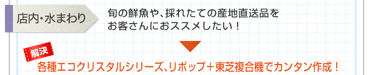 水や水滴にさらされやすい生鮮売場でも耐水紙エコクリスタルなら大丈夫です。