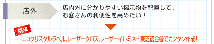 エコクリスタルラベル、レーザークロスなら水に強く、耐久性にもすぐれているので、屋外でも長期間掲示することができます。