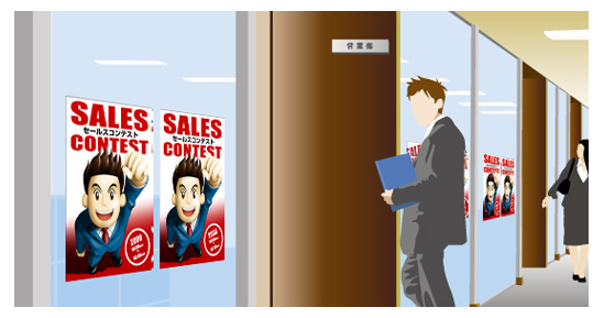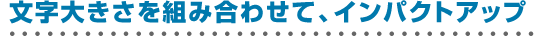 文字の大小、背景の色に変化をつけると、社内でもインパクトあるポスター類がつくれます。