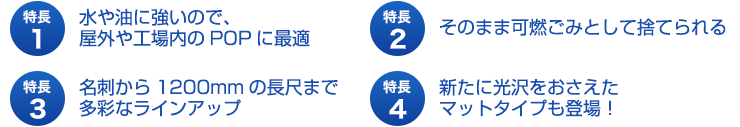 高耐水・高耐久の機能用紙。コシがあり水に強く、様々な場所でご利用頂けます。