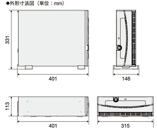 | 外形寸法 | 横置き時:(幅)315㎜×(奥行)401㎜×(高さ)113㎜ 縦置き時:(幅)146㎜×(奥行)401㎜×(高さ)331㎜ ※ゴム足、スタンドを含む | ||||